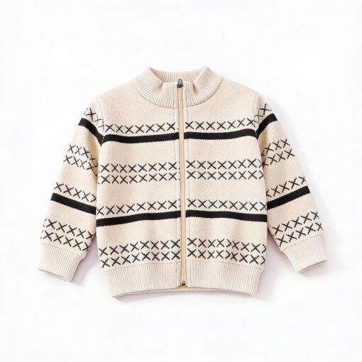 بلوفر تريكو مريح بخامة ناعمة يدي إحساس دفا طول اليوم، بتصميم بسوستة قدام لسهولة اللبس مع نقشة مميزة وخطوط عرضية تضيف لمسة ستايل كلاسيك شيك. قطعة عملية وسهلة التنسيق، مناسبة للوك كاجوال مرتب يخلي الإطلالة دافية ومميزة