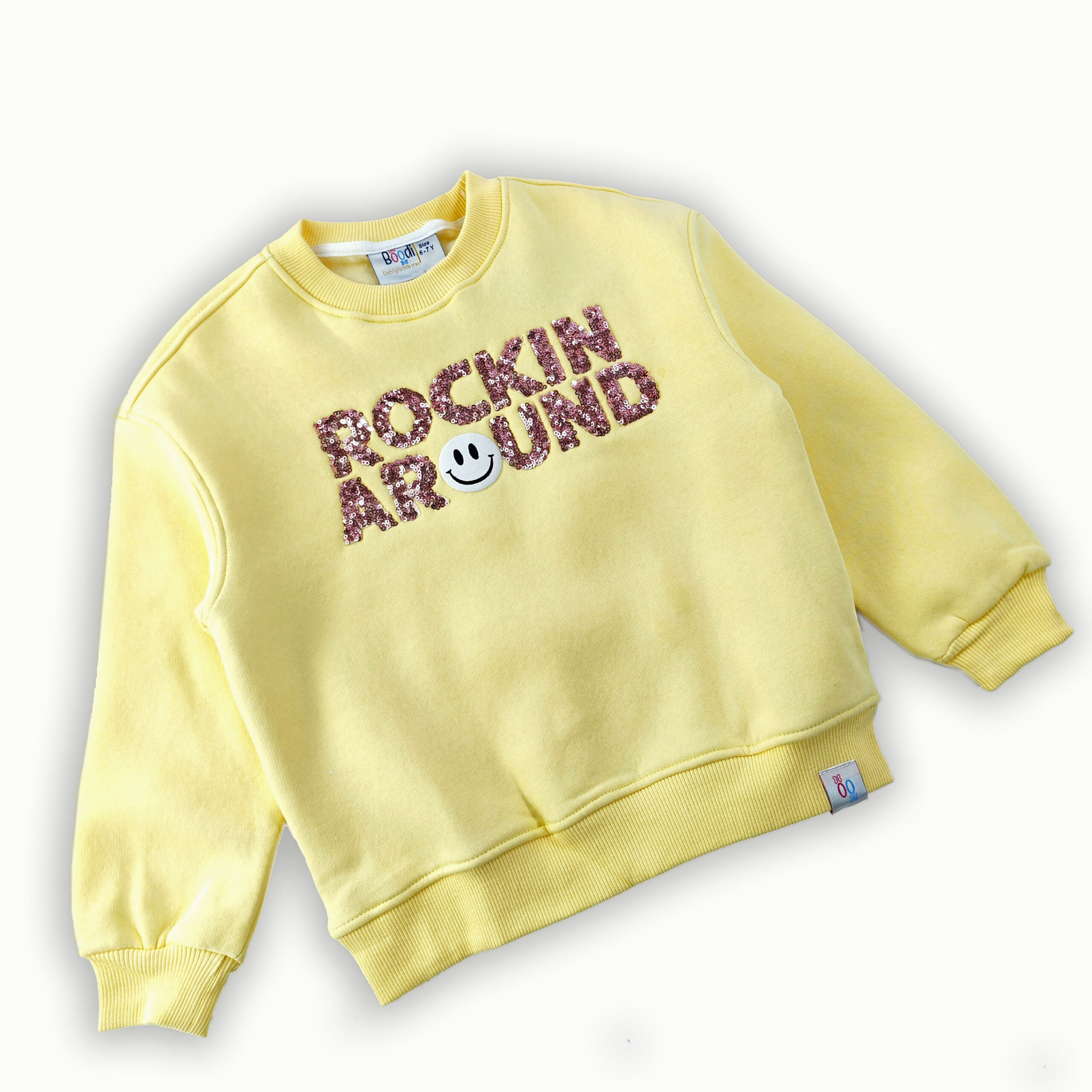 سويت شيرت مريح بخامة ناعمة وتصميم رواند يعطي حرية حركة مثالية، مع كلمة Rockin Around على الصدر تضيف لمسة مرحة ومليانة طاقة لللوك اليومي. قطعة سهلة التنسيق مع أي بنطلون أو جينز، تخلي الستايل كاجوال بسيط وشيك في نفس الوقت