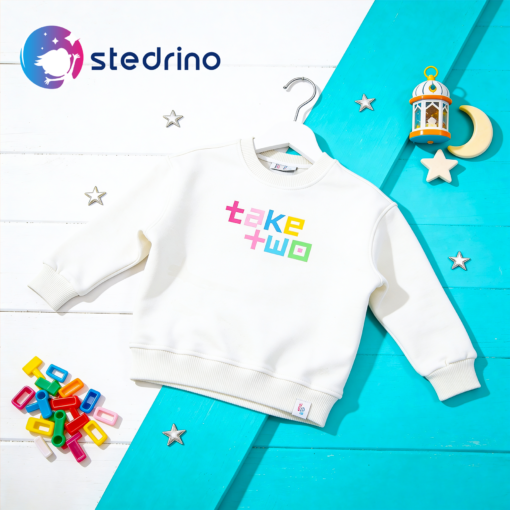 سويت شيرت مريح بخامة ناعمة وتصميم رواند عملي يدي حرية حركة طول اليوم، مع عبارة Take Two اللي تضيف لمسة مرحة للوك. قطعة سهلة التنسيق وتدي ستايل كاجوال شيك يخلي الإطلالة بسيطة ومميزة في كل خروجة