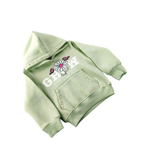 هودي مريح بخامة ناعمة وتصميم عملي يدي إحساس دفا وراحة طول اليوم، مع رسمة وردة وكلمة Grow اللي تضيف لمسة إيجابية وهادية للوك. قطعة سهلة التنسيق وتدي ستايل كاجوال شيك يخلي الإطلالة بسيطة ومميزة في نفس الوقت
